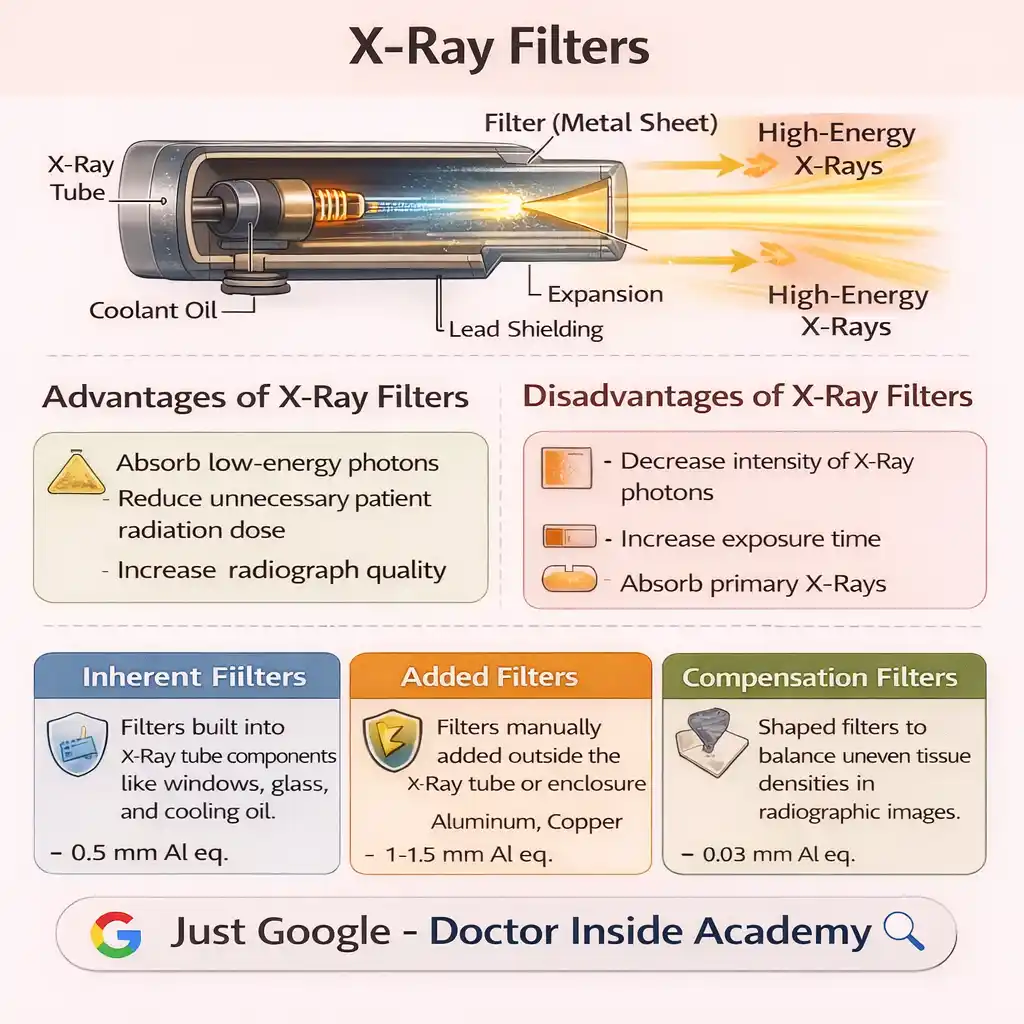 There are many types of X-ray filters used in X-ray machines. We discussed many of the above, and a few other types of X-ray filters will be explained below.