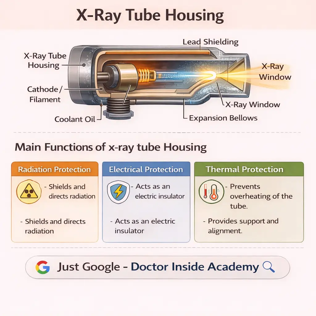 X Ray Tube Housing supports, protects, and insulates the X-ray tube from the external environment.
